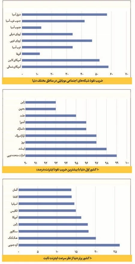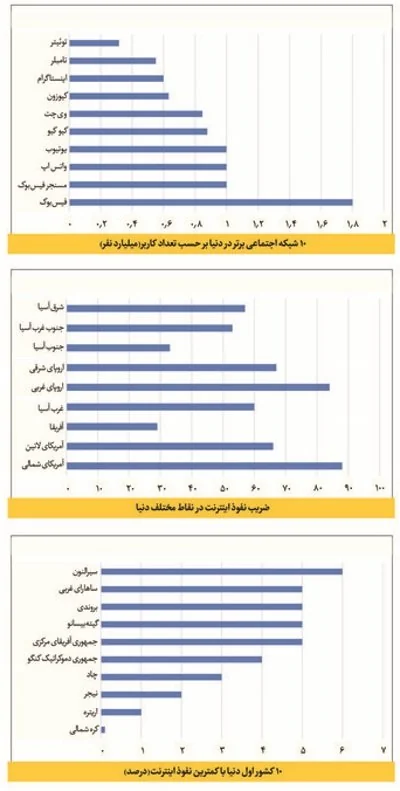 اخیراً موسسه «We Are Social» که در زمینه اینترنت فعالیت دارد، پژوهشی انجام داده که آمار جزئیات استفاده از اینترنت در نقاط مختلف دنیا و همچنین شبکههای اجتماعی و رتبهبندی استفاده از آنها رادر دنیا ارائه کرده است.طبق این گزارش در حال حاضر 3.7 میلیارد نفر در دنیا کاربر اینترنت هستند.از سوی دیگر ضریب ن...
