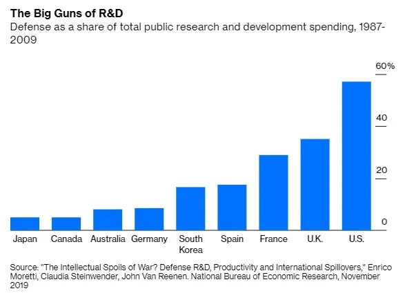 فراموش کردن این موضوع الان برای آمریکاییها راحت است، اما زمانی وجود داشت که «توانایی پیروز شدن در جنگها» هدف انگیزهبخش نوآوری فناورانه بود. NDRC و OSRD نیروی محرکه در پس حمایت دولت از پژوهش و فناوری در جنگ جهانی دوم بودند، و NSF و DARPA در دل این سنت رشد کردند. در آمریکا هزینههای دفاع سنتاً بخش بسیار بزرگی از هزینههای پژوهشی دولت را به خود اختصاص داده است و بسیاری از موفقترین صنایع فناوری بخش خصوصی در آمریکا به طریقی محصول جانبی آن تلاشهای دفاعـمحورند.