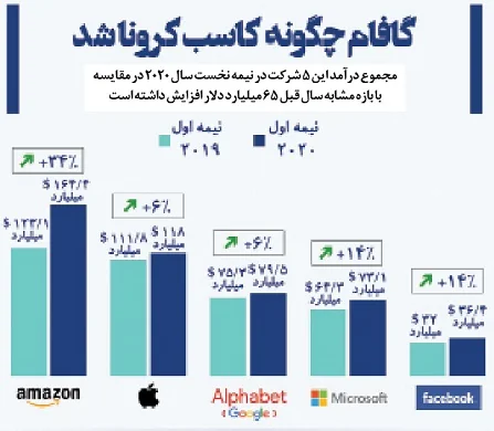 مجموع درآمد این 5 شرکت در ۳ ماهه دوم سال 2020 دوبرابر شده و معادل 34 میلیارد دلار برآورد میشود.