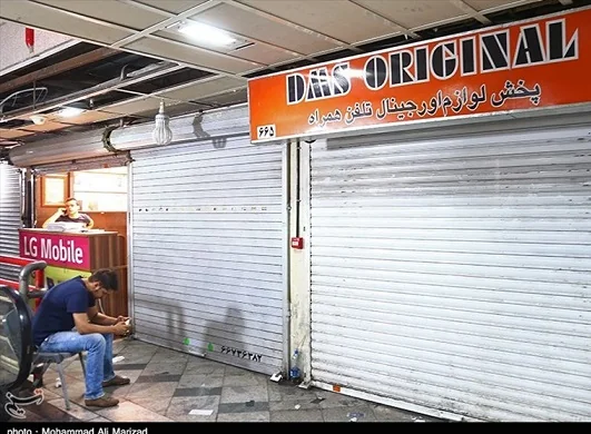 این تصاویر، گزارشی است از اعتراض برخی از کسبه این پاساژ که تا ساعت 12 ظهر، از باز کردن مغازههای خود به دنبال هراس از ضبط گوشیهای تلفن همراه در مغازههایشان، از بازگشایی مغازهها امتناع کردند.
