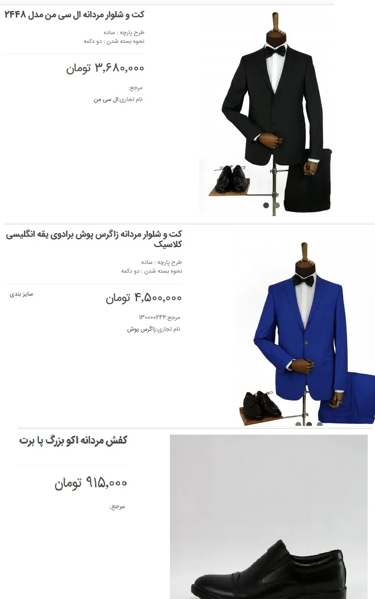 گرانفروشی میلیونی کت و شلوار در یک فروشگاه اینترنتی