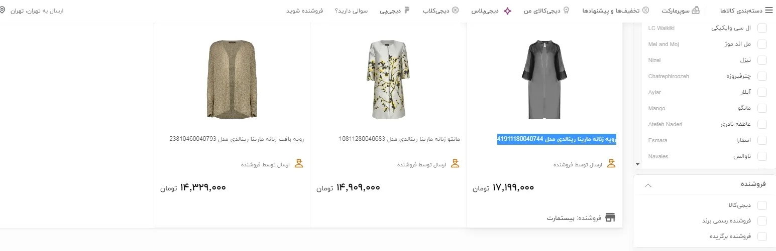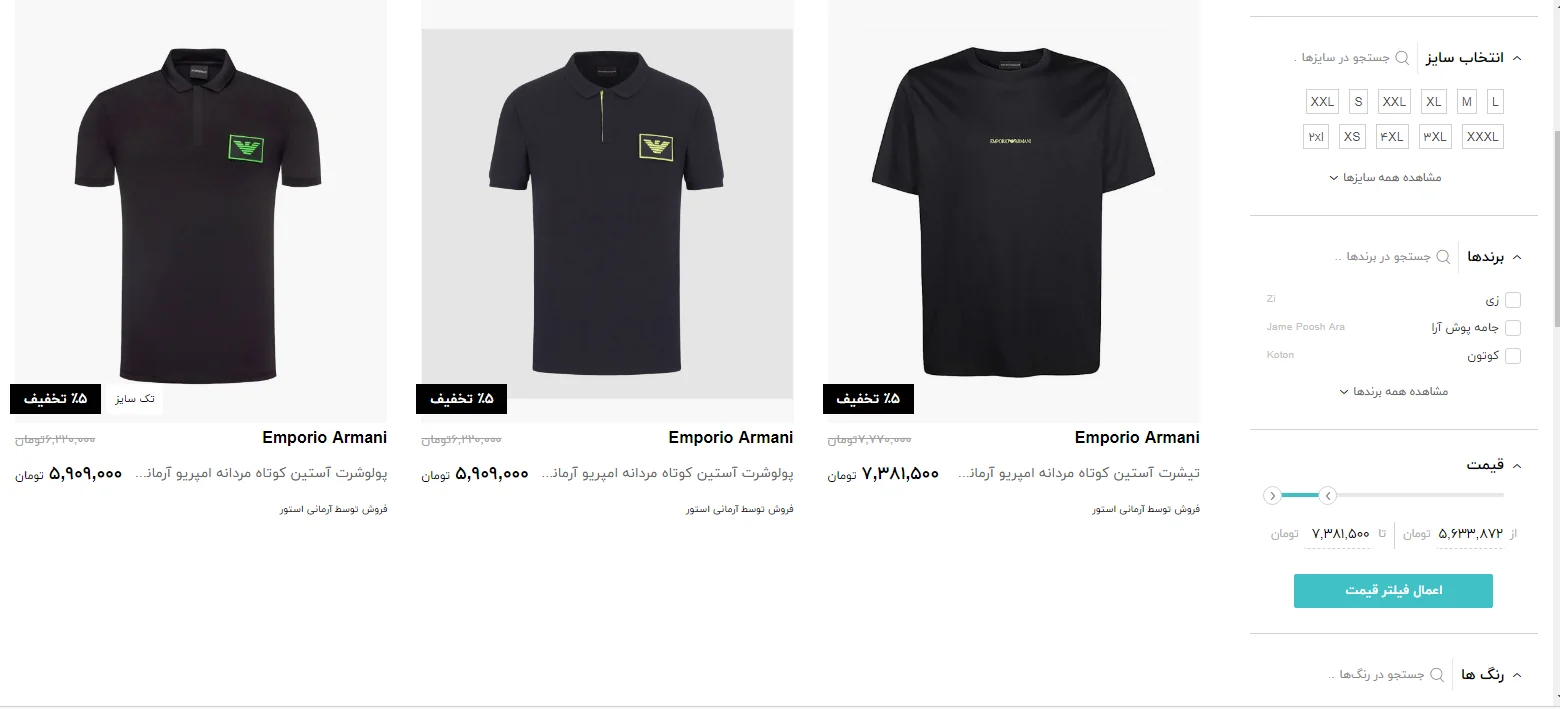 در مورد دیگری در یکی از فروشگاههای اینترنتی تیشرت آستین کوتاه مردانه امپریو آرمانی مدل ۳H1T781JSTZ-0922 در تخفیف ۷ میلیون و ۳۸۰ هزار تومان قیمت گذاری شده است. همچنین رویه زنانه مارینا رینالدی مدل ۴۱۹۱۱۱۸۰۰۴۰۷۴۴ نیز ۱۷ میلیون و ۱۹۹ هزار تومان به فروش می رسد.