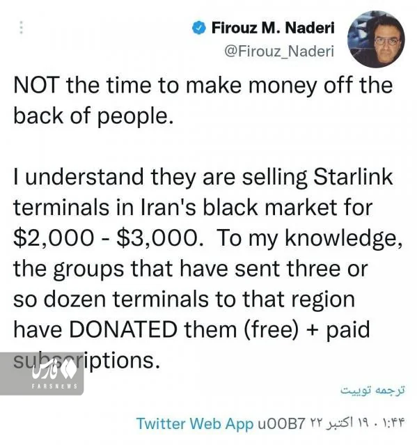 براساس گزارشات مردمی در سامانه سوت‌زنی خبرگزاری فارس، علیرغم ممنوعیت فعالیت اینترنت ماهواره‌ای در کشورمان شاهد خرید و فروش تجهیزات استارلینک هستیم، به‌نحوی که اپلیکیشن‌ها و لینک‌های این فناوری بدون سخت‌افزار آن از مصادیق بدافزار هستند....