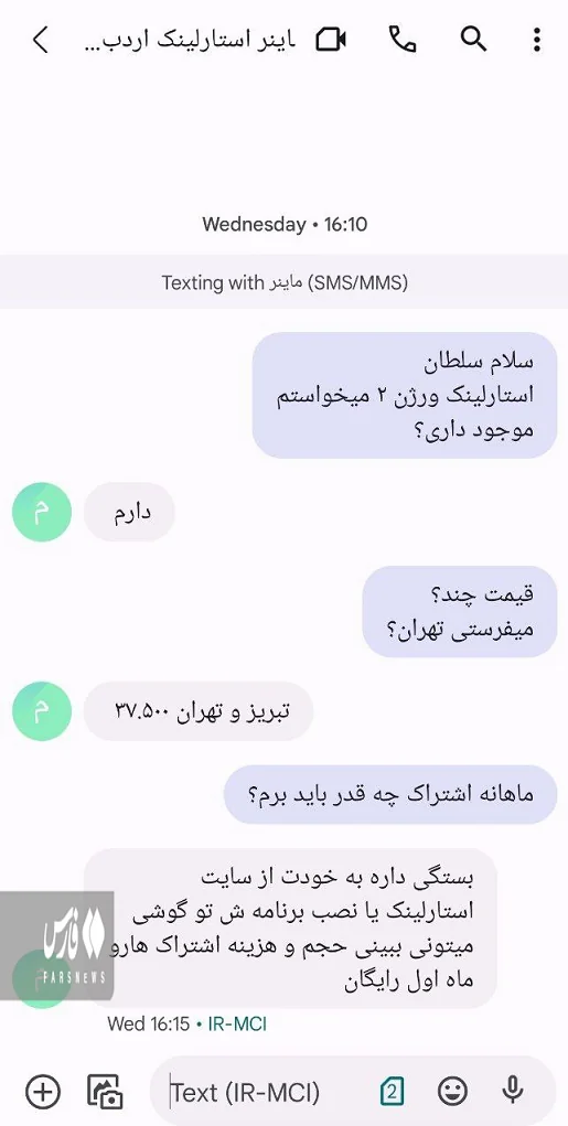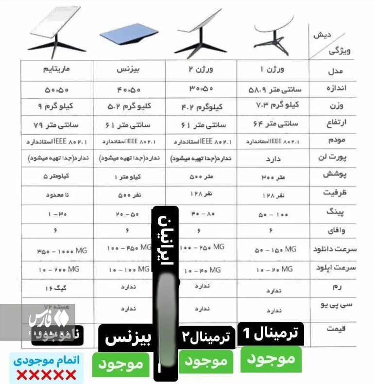 با توجه به مطلب فوق، براساس گزارشات مردمی در سامانه سوت‌زنی خبرگزاری فارس شاهد قاچاق تجهیزات استارلینک از دبی به ایران و وجود چندین سکوی ISP برای ارائه خدمات اینترنت ماهواره‌ای در کشورمان هستیم، در همین راستا برای کسب اطلاعات بیشتر با یکی از گزارشگران ارتباط گرفتیم که وی درباره‌ی مدل‌های استارلینک و قیمت خرید آن اظهار کرد: استارلینک در ۴ مدل ورژن ۱، ورژن ۲، بیزینس و ماریتایم فعالیت می‌کند که تاکنون اکثراً سری‌های ورژن ۱ و ۲ با قیمت ۵۰۰ الی ۲۵۰۰ دلاری در ایران دیده شده است.