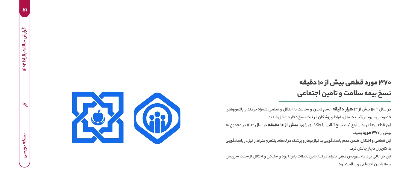در بخشی از گزارش سال 1402 پلتفرم آنلاین سلامت بقراط به نسخه نویسی بقراط اختصاص یافته؛ به قطعی سامانههای بیمه سلامت و تامین اجتماعی پرداخته شده است.